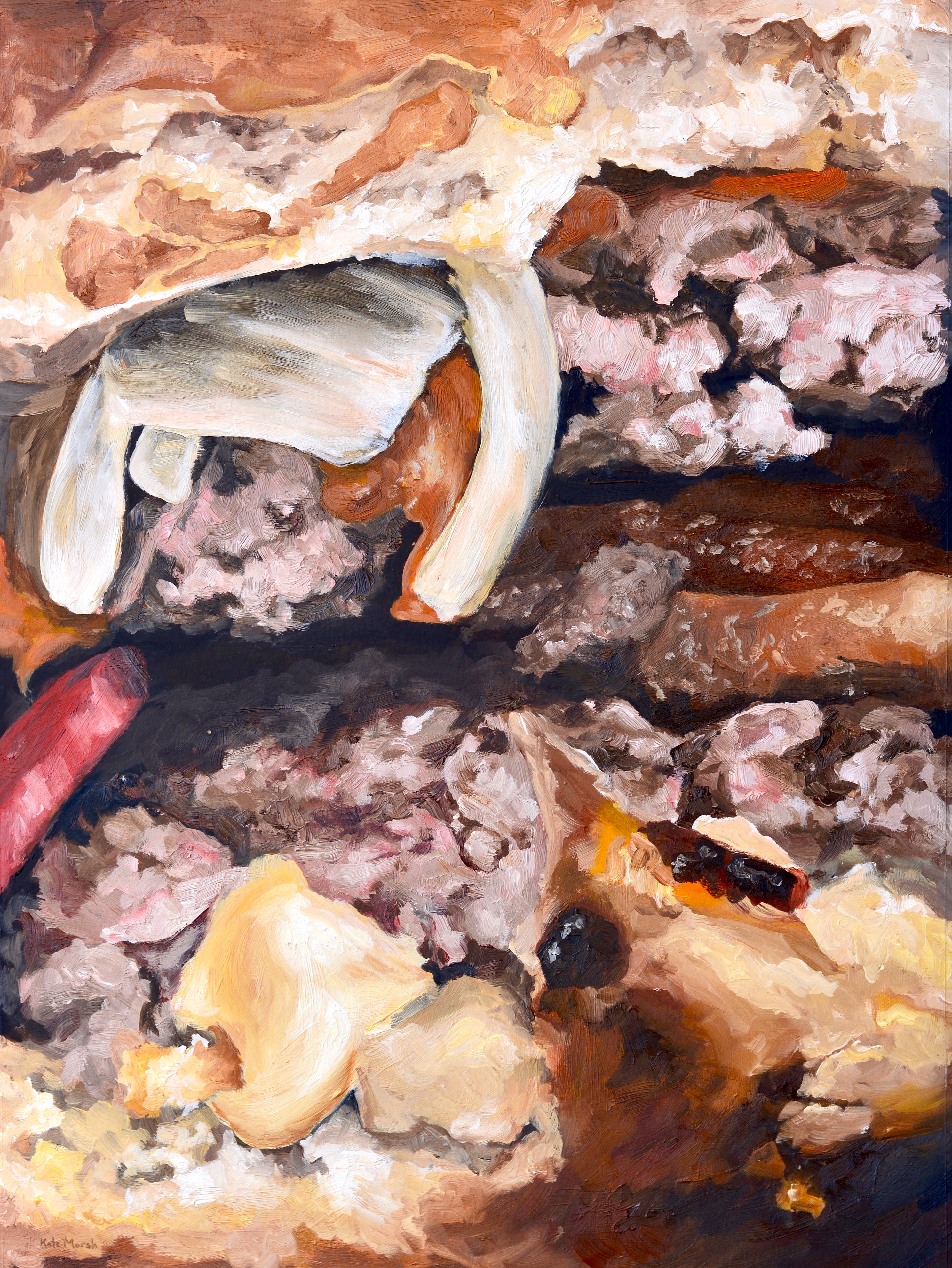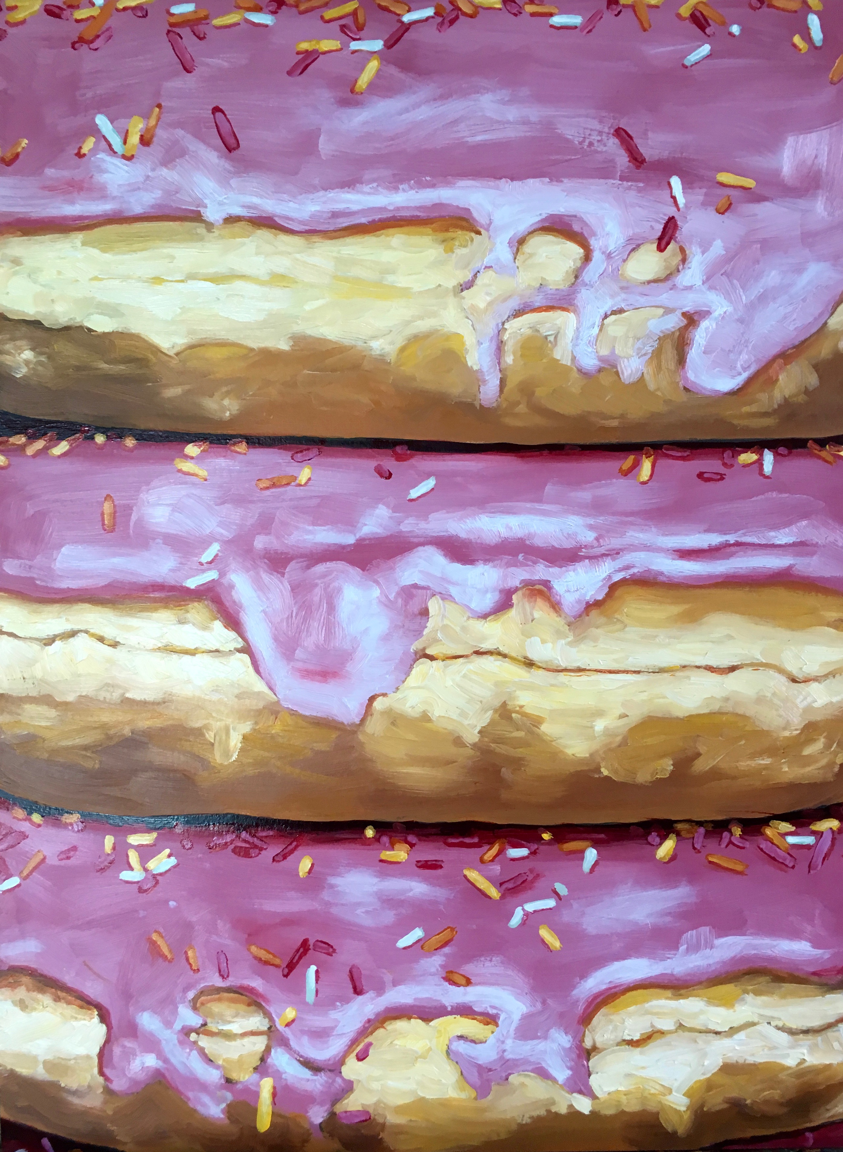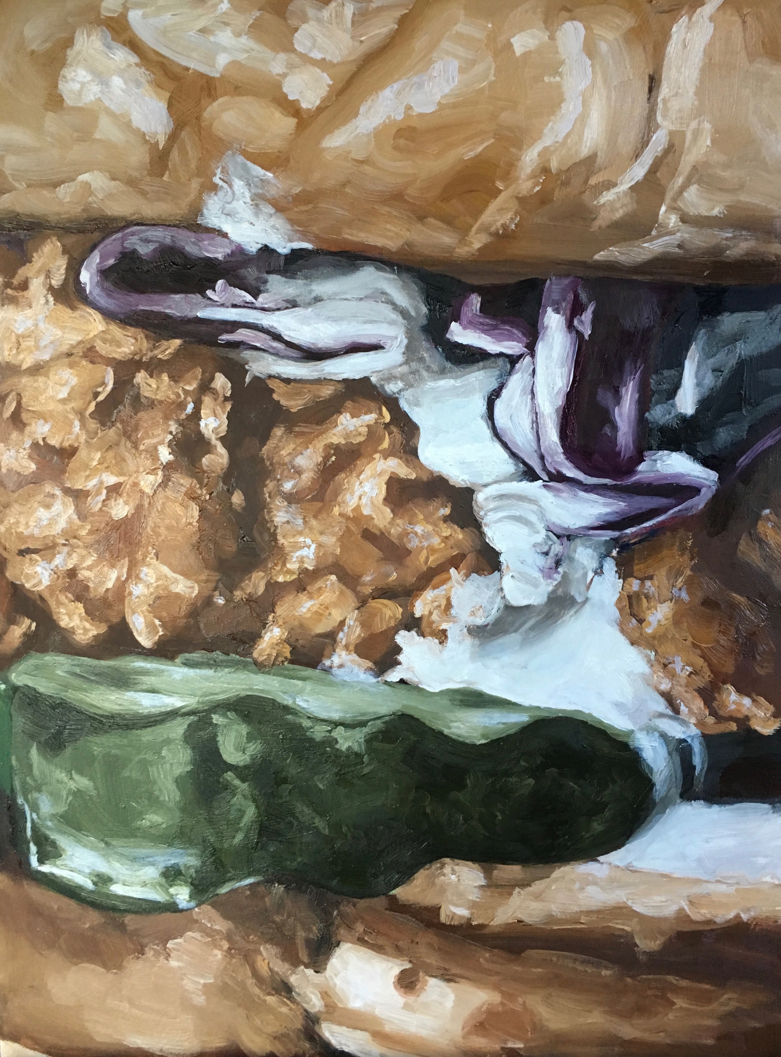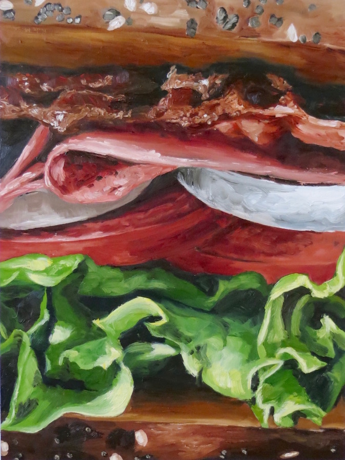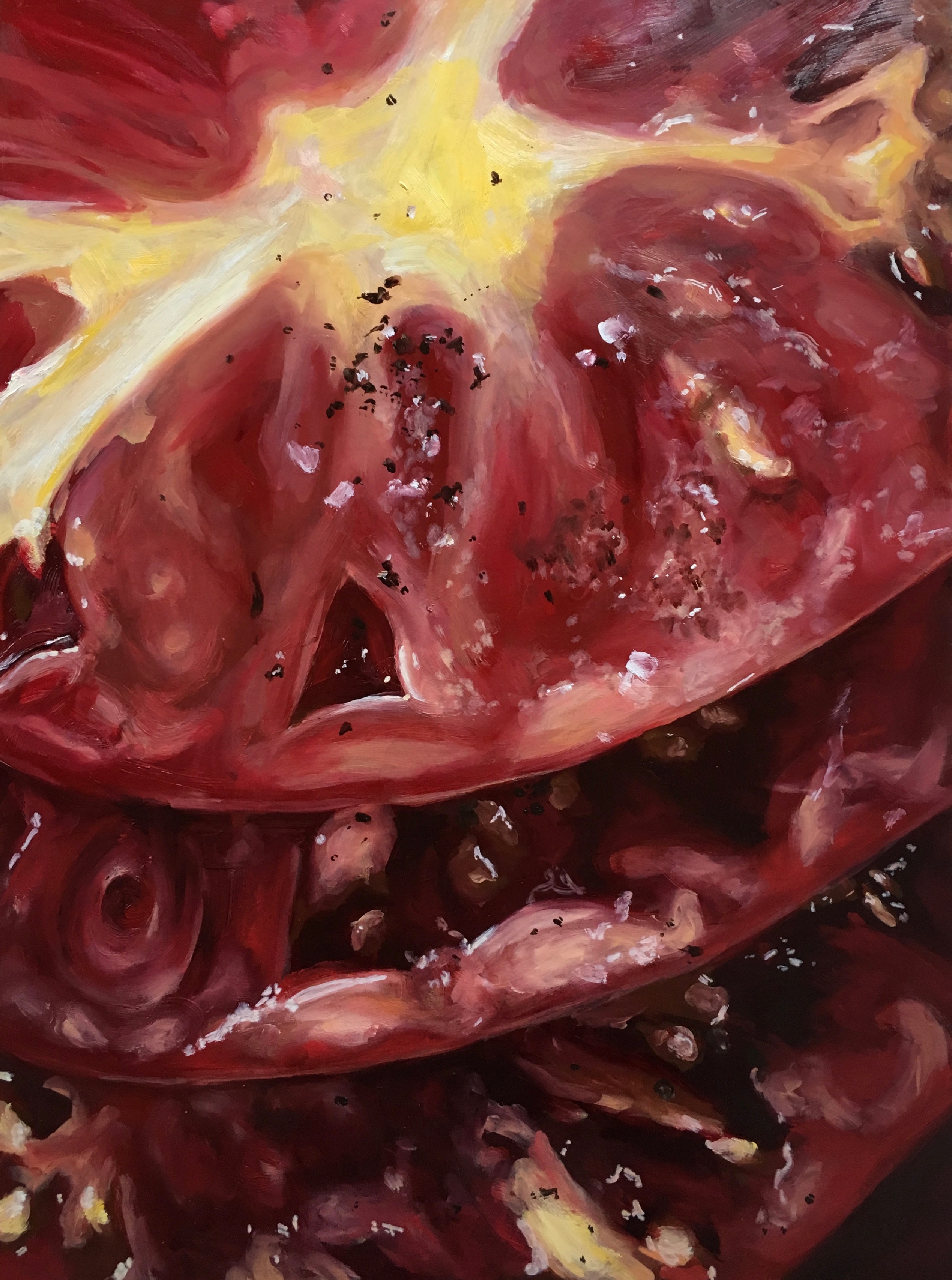 ‘Edible Strata’ is an ongoing series begun in early 2016 exploring the relationship with food and memory. The pieces are created from cropped photos of different foods, particularly those that are served in layers, or have ‘strata.’ Many great memories are made over particular meals and looking at the foods triggers the physical response of hunger, but also the memory of eating that meal with that friend back in the day.